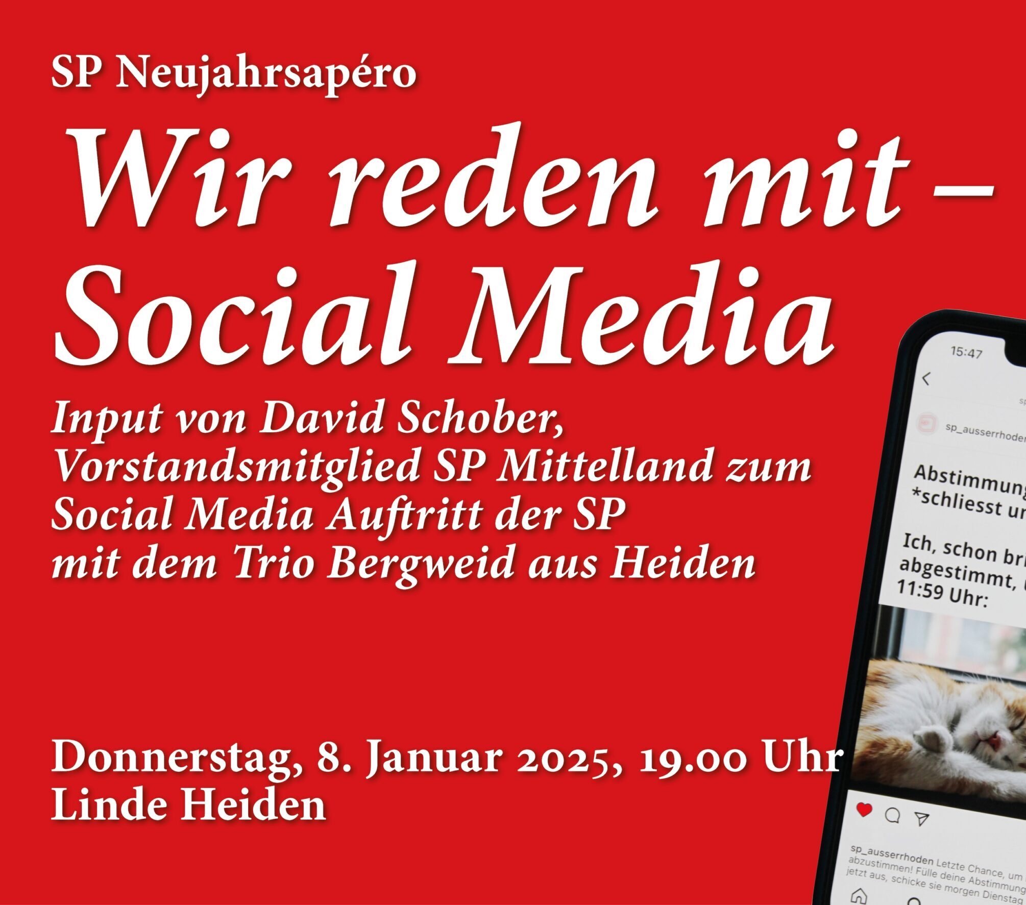 Wir reden mit Social Media Inputs von David Schober, Vorstandsmitglied der SP Mittelland , zum Thema "Sozial Media Auftritt der SP AR" mit dabei das Trio Bergweid aus Heiden